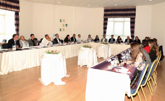NEVÜ Turizm Fakültesi Dekan Vekili Prof. Dr. Nilüfer Şahin Perçin başkanlığında; Fakülte yönetimi, akademik kurul üyeleri ve Turizm Araştırmaları Enstitüsü temsilcilerinin katılımıyla gerçekleştirilen toplantıya dış paydaş olarak Nevşehir İl Kültür ve Turizm Müdürü Arda Heb, Nevşehir Ahiler Kalkınma Ajansı Genel Sekreteri Bekir Varol, Kapadokya bölgesinin önemli turizm işletmeleri arasında yer alan Kapadokya Turistik Otelciler ve İşletmeciler Derneği (KAPTİD) Yönetim Kurulu Başkanı, Kapadokya Alanı Turizm Yatırımcıları Derneği (KAPYAD) Yönetim Kurulu Başkanı, Nevşehir Rehberler Odası (NERO) Yönetim Kurulu Başkanı, Kapadokya Aşçılar Derneği (KAPAŞDER) temsilcisi, Marriott Hotel Nevşehir Genel Müdürü, Utopia Cave Cappadocia Hotel Genel Müdürü, Argos in Cappadocia Otel Genel Müdürü ve diğer sektör temsilcileri katılım sağladı.