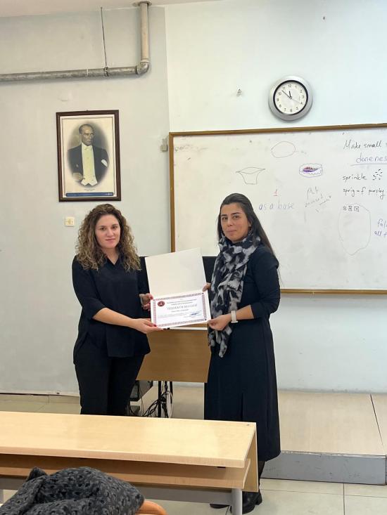 Etkinliğin sonunda, katkılarından dolayı Seda Aydoğdu’ya Doç. Dr. Eda Özgül Katlav tarafından teşekkür belgesi takdim edildi.